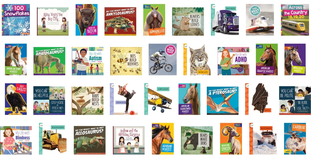 A wide variety of reading levels and subject matter (Science, Math, Geography, Language Arts, & Social Studies) from these great publishers: