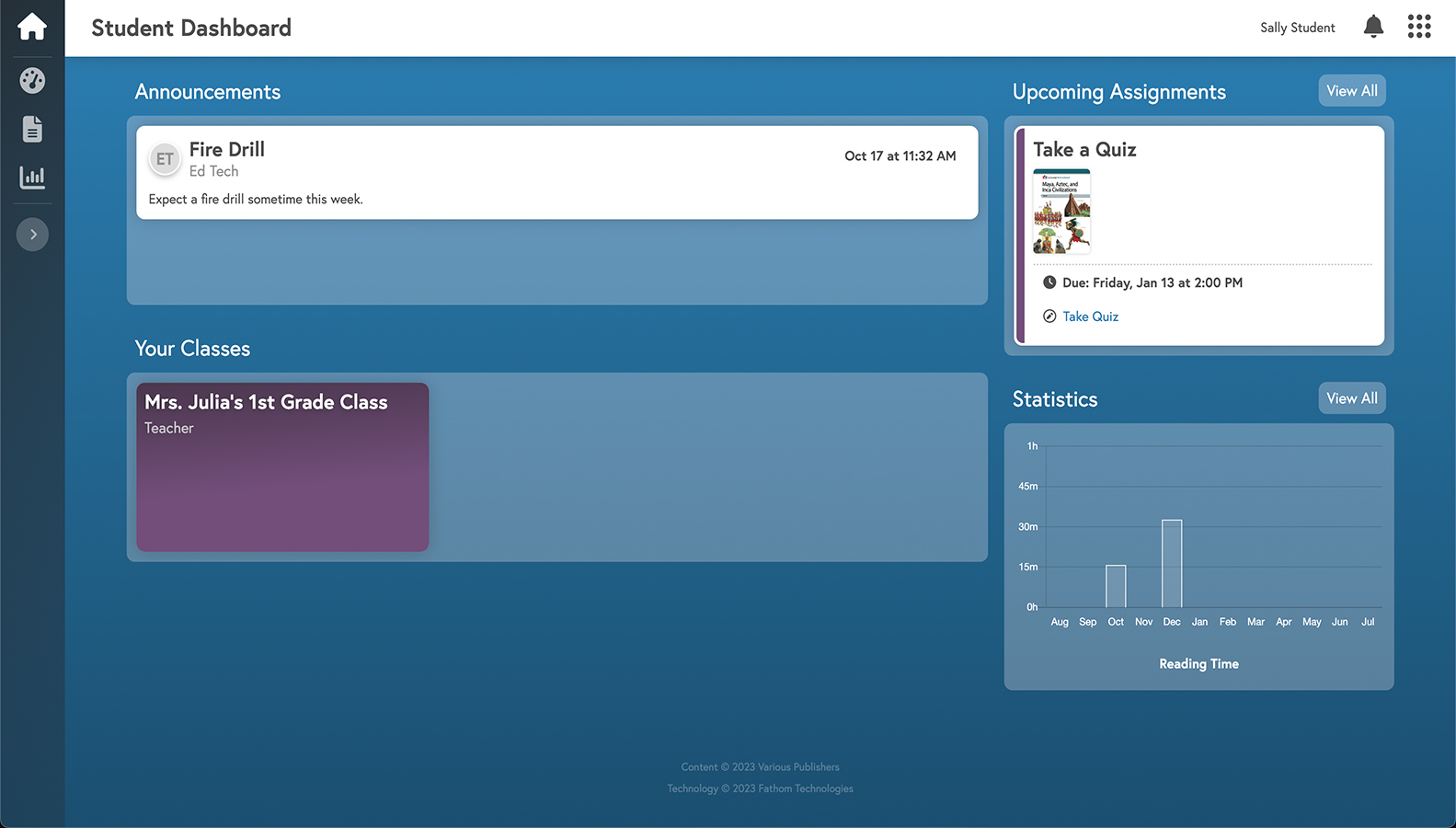 Student, teacher, and school dashboards