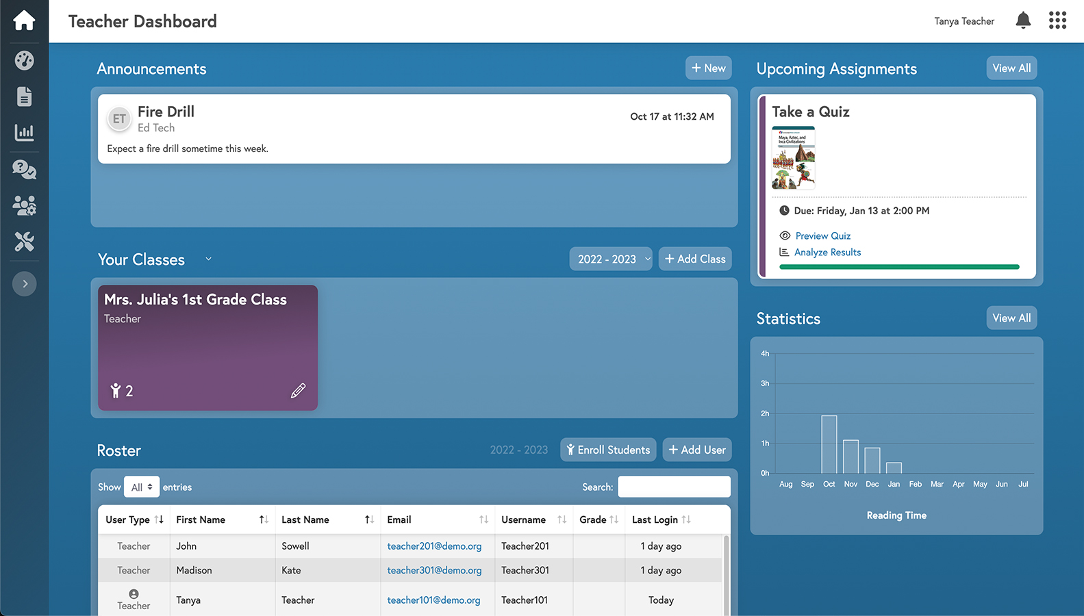 • Teacher Dashboard